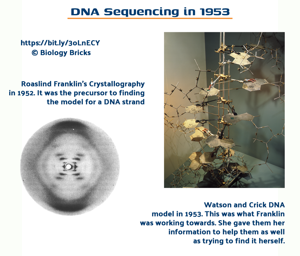 The big find in 1953 - the structure of DNA - was found by James Watson and Frances Crick. As a result of their work, they were awarded the Nobel prize in 1962. The other scientist given recognition was Maurice Wilkins. Unfortunately, for Rosalind Franklin, she did not receive recognition, even though her photographs helped the other three to find the structure. She later died in 1958 after a battle with cancer.