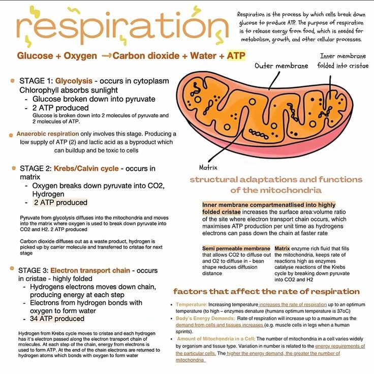 Anaerobic respiration: this process doesn't use oxygen to create glucose. It still creates glucose, but in smaller amounts than aerobic.