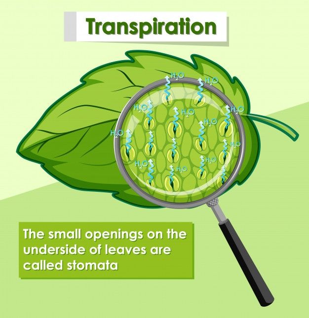 Now, excess water in plants and trees do a similar thing. They release excess water from their stomata, which in turn is soaked up by the sun in a similar process to evaporation. This is called transpiration.