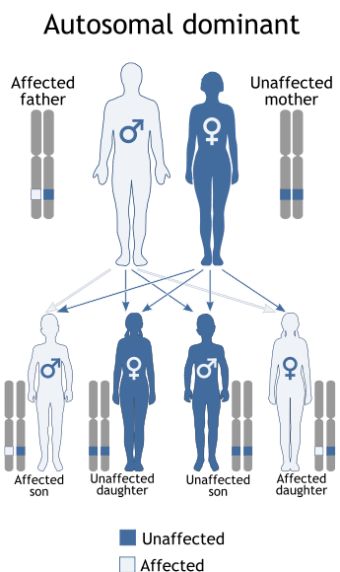 It can also skip a generation. That's right, if your father didn't have a genetic disorder, but your grandfather did, then you could effectively have this disorder.