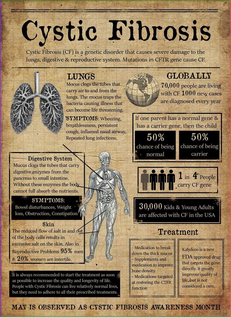There are symptoms that you can get if you have Cystic Fibrosis, and they include: