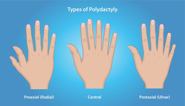 A baby with polydactyly can have any of the following symptoms: