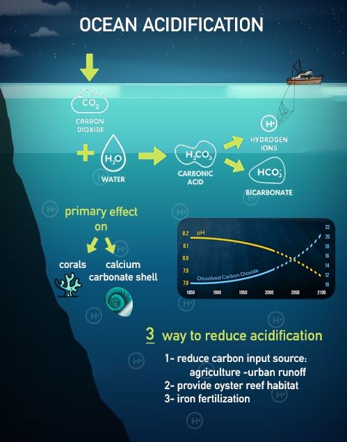 What is that? Well, ocean acidification is the process of lowering the pH level in, well, the oceans. Why is this important? Because a reduction in the pH level to a more acidic level, means that some organisms might not be able to live there, and eventually might go extinct. Ever since the industrial revolution, some 200 years ago, the concentration of CO2 in our atmosphere means that acid levels have increased significantly.