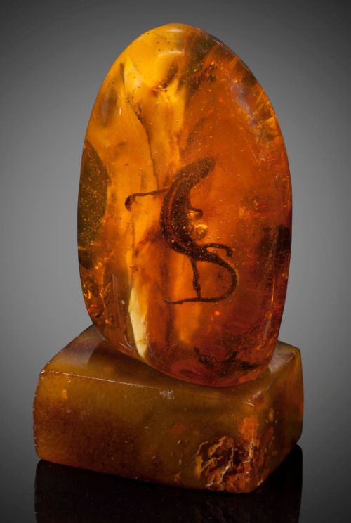 Amber: this way, an insect, or small animal can be embalmed in liquid tree sap, which eventually hardens and turns into a stone-like structure called Amber. This preserves the creature inside, with almost all of it kept the way it was when it got encapsulated.