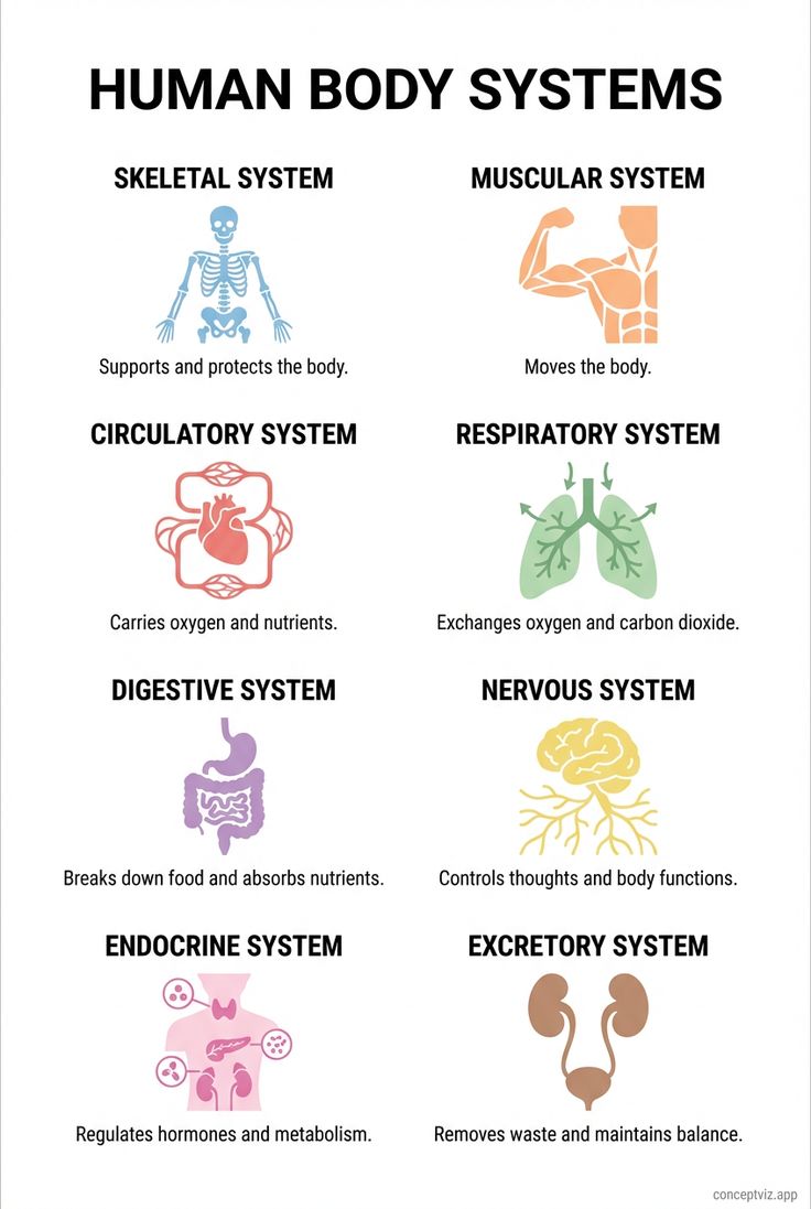 An organ system (our body has 12 in total) is a collection of organs that work together in unison to perform a function. There are a few organs that help more than one system (the liver, for example, which has over 500 functions), but mostly, they work independently, governed by the brain.