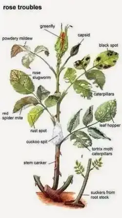Another common disease in plants, and specifically in species of roses, a fungal pathogen called black spot affects the leaves by turning them black (hence the name) or purple. This in turn causes the other leaves to turn yellow and drop off, and can severely stunt the growth of rose plants.