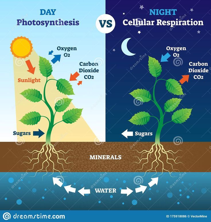 Plants have a series of structures called stomata, which allow the plant to have gas exchange. They open and close at intervals to release oxygen back into the atmosphere. At night, these stomata close and don't open, storing the oxygen ready for the next day. While respiration occurs at night, the leaves then become oxygen-rich.