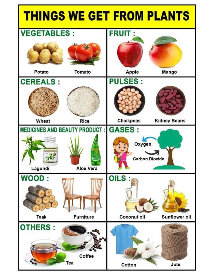 Other uses include tea from tea bushes, cotton wool (makes our jumpers for the winter), and wood from trees.
