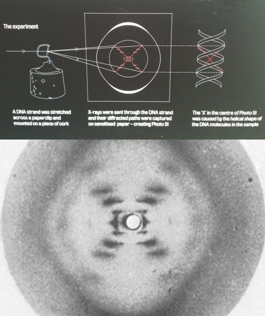 At the turn of 1951, Franklin returned to the UK to work as a research associate at the King's College London in the biophysics unit, where director John Randall used her expertise on X-ray diffraction techniques on DNA fibres. It was here where she worked with her student Raymond Gosling and made her discovery. Taking pictures of DNA and discovering that there were two forms of it: a dry 'A' form, and a wet 'B' form. A now-famous photo (Photograph 51) of the 'B' form of DNA evidenced the structure of DNA.